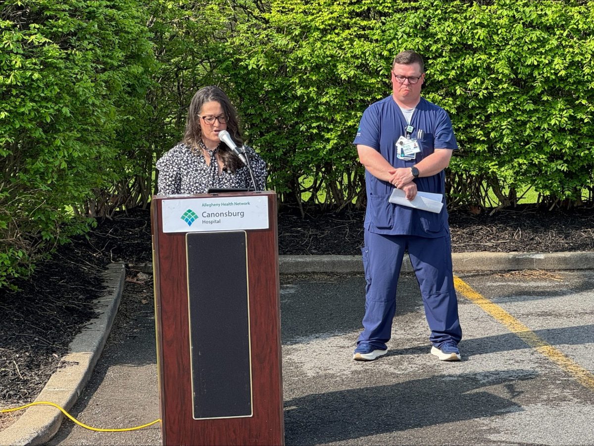 Allegheny Health Network’s Canonsburg Hospital recognized National Donate Life Month by hosting its annual flag raising ceremony on April 15. The event featured powerful stories of survival and heroism from organ transplant recipients and the families of organ donors. Among the speakers was Sarah Lamone, a liver transplant recipient from Weirton, W.Va.