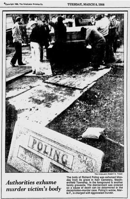 The investigation into Poling’s murder was a joint effort that involved numerous law enforcement agencies that worked hard to guarantee a successful conclusion and conviction. Because the murder occurred in Ohio, the case was tried in Trumbull County. During the trial, the prosecutor described Marie Poling as a cold-blooded “black widow killer.”