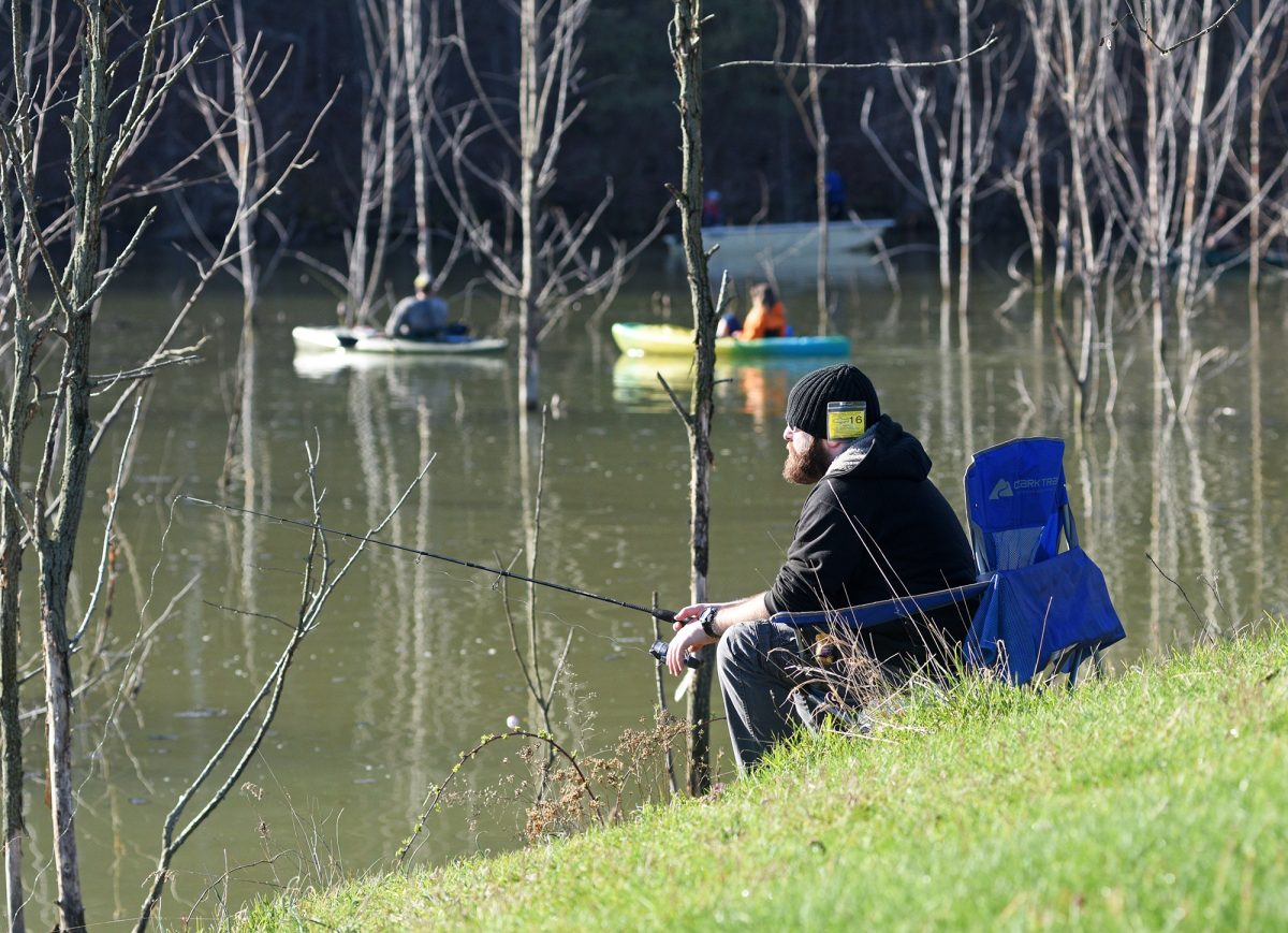 Celeste Van Kirk/Observer-Reporter Steve Post of Washington fishes Saturday at Dutch Fork Lake in Claysville.