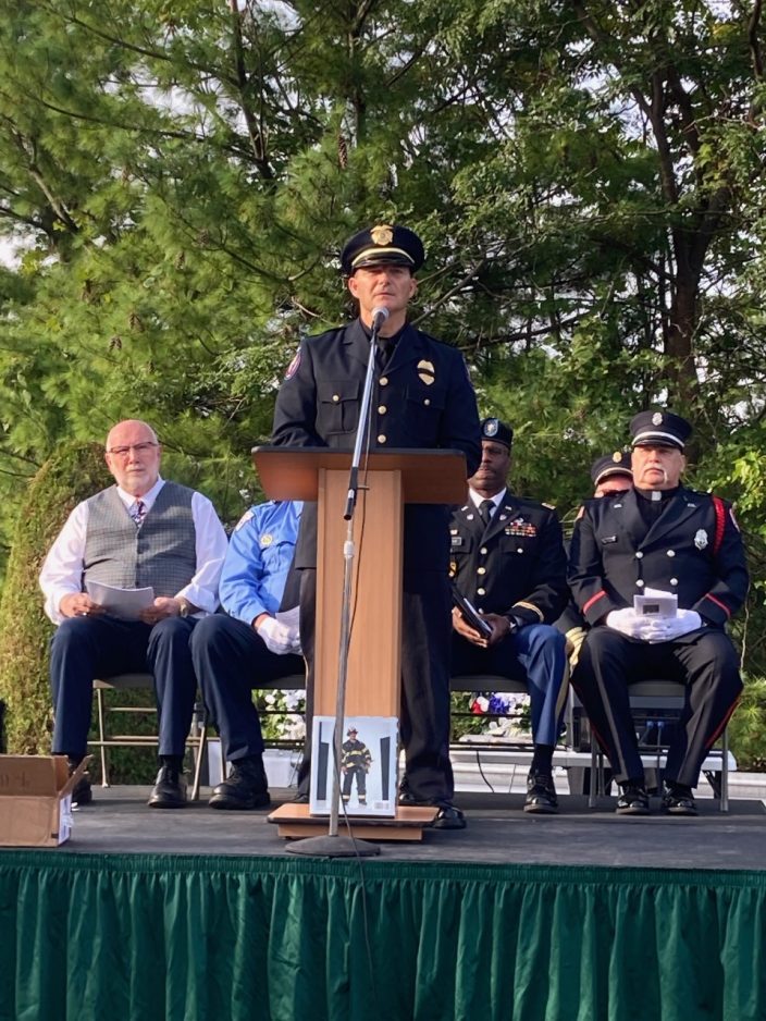 “We stand here 20 years later, with a commitment, that we never forget the victims or heroes that we lost on that morning,” said Jason Cox, Uniontown’s police chief. “Many of us have certain aspects of that day that are seared in our memory. It was the first time I ever recall there was not a cloud in the sky or a jet stream.”