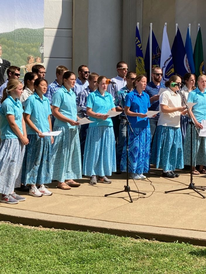 A choir from the Spring Valley Bruderhof community in Farmington sang “Amazing Grace” and “America the Beautiful” at the ceremony, and a 20th anniversary plaque and art installation were also dedicated.