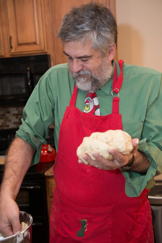 Eventually, I emerge with a big ball of dough that needs to chill for a while before being subjected to a rolling pin, which to this point I know best as something that Wilma likes to use on Fred Flintstone’s head.