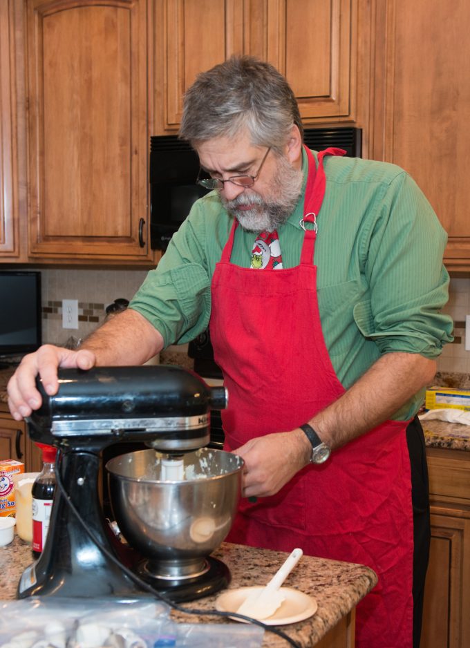 Fortunately, Mary Alice owns the Cadillac of electric mixers, a far cry from the handheld variations we cranked our way through in eighth grade. So adding flour to the concoction is no problem, as long as the mixer isn’t running too fast and nothing flies out of the bowl.