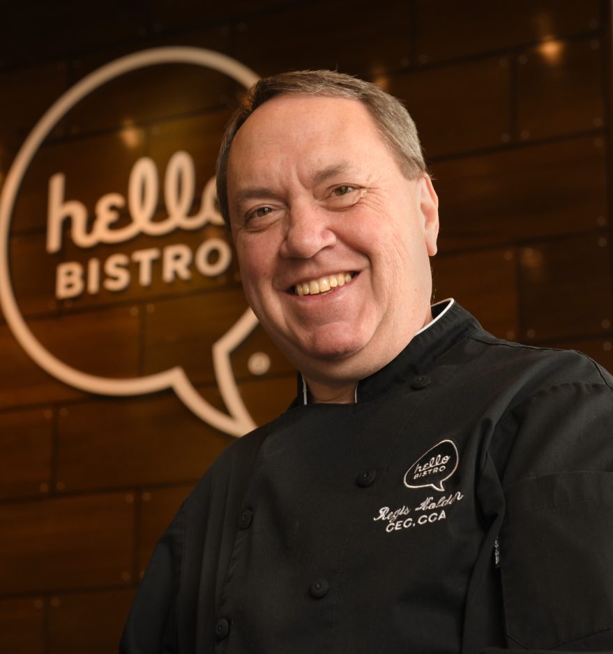3. Using a mezzaluna knife or French knife, chop the ingredients into uniform pieces, about ¼” in size.