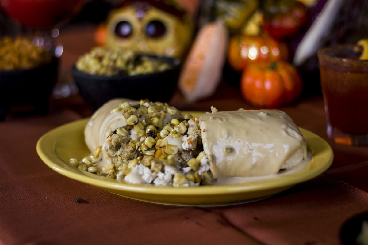 Editor’s note: Make this at home with your own Thanksgiving leftovers. Get creative! Or, just head to Steel Cactus before Dec. 1 to let them do the assembly for you.