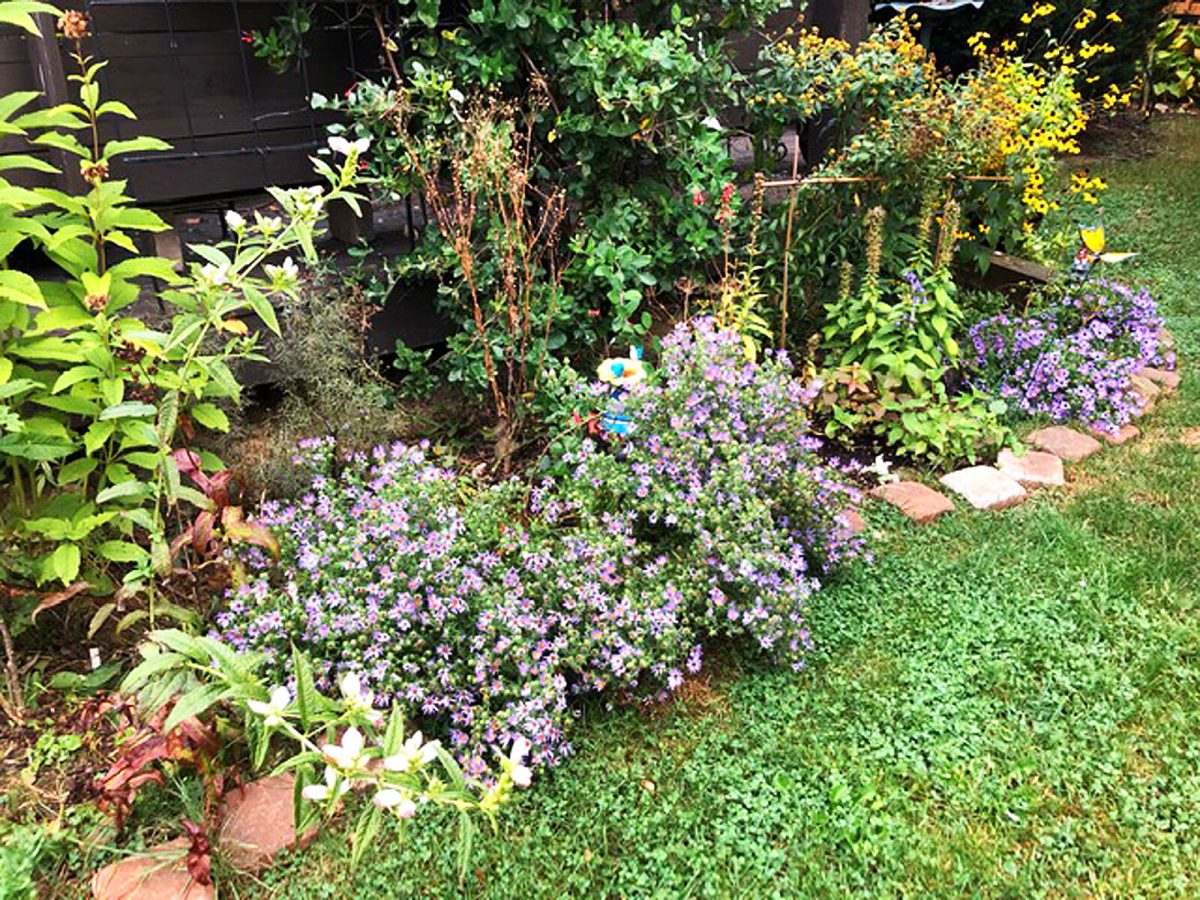 - A few native plant ideas include blazing star, bee balm, butterfly weed, dreeping plox, cardinal flower, Joe-Pye weed, New England aster and hairy beardtongue.