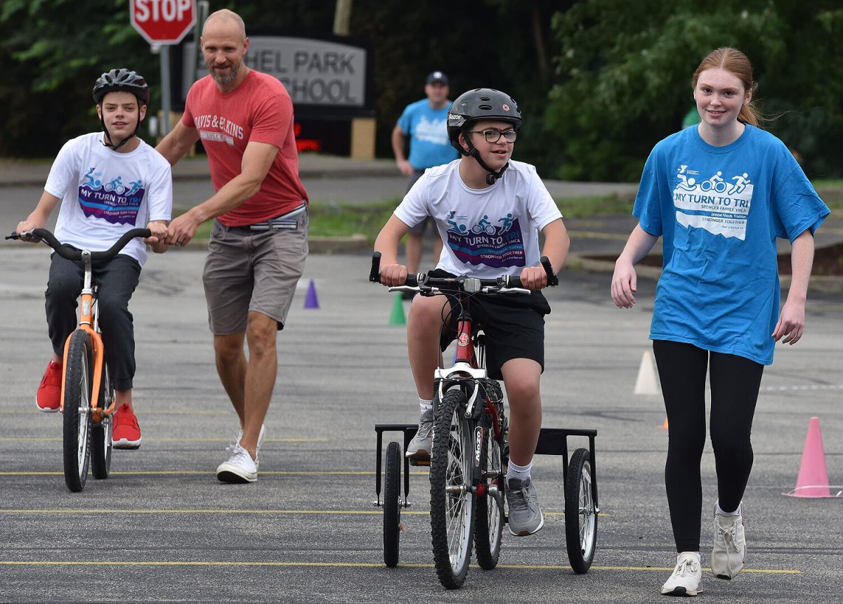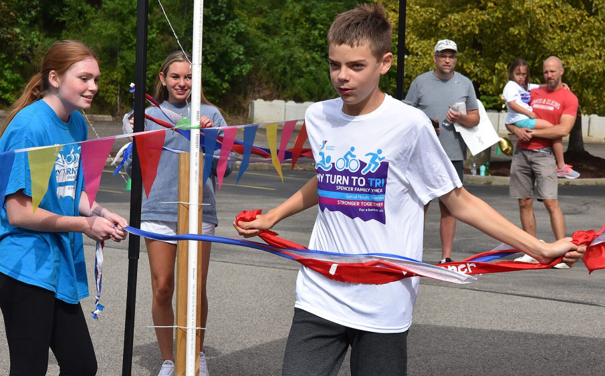 Winning was on Christian Fishell’s mind during the second annual My Turn To Tri special needs triathlon Aug. 15 at the Spencer YMCA in Bethel Park.