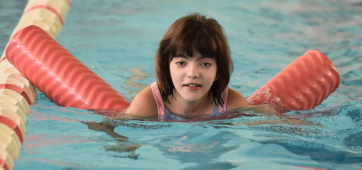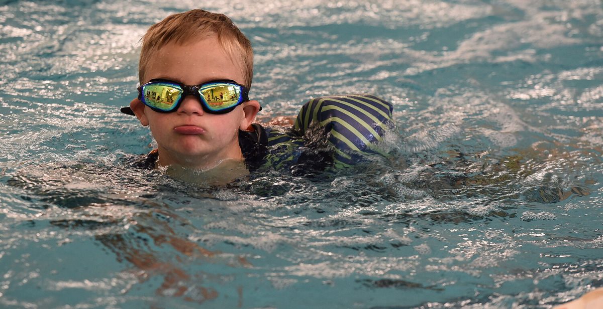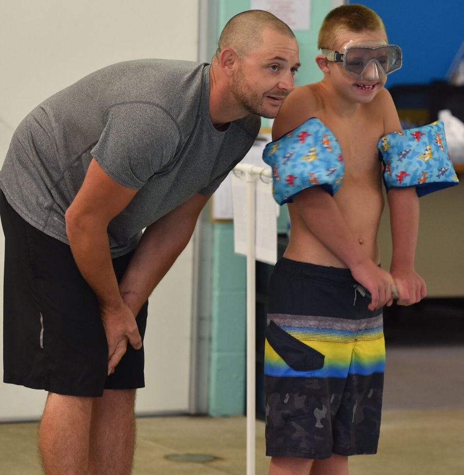 Because he had a recent medical procedure, Christian could not participate in the swimming portion of the event. Instead of becoming upset, Christian opted to walk around the pool and hold up signs of encouragement for the other competitors.