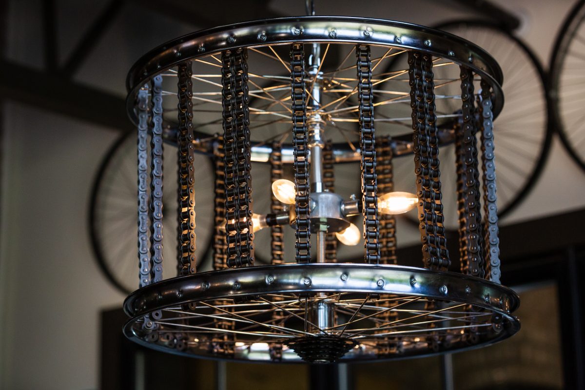 “All of the restaurants are covered in bicycle artwork,” he said. “We have a deer head made out of bicycle parts and bicycle-themed mosaic tile work throughout the restaurant.”