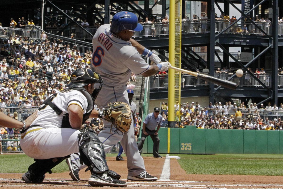 The Mets took a 3-0 lead in the first inning. Byrd bounced a run-scoring, ground-rule double into the left-field seats, and Buck lined a two-run single to right.