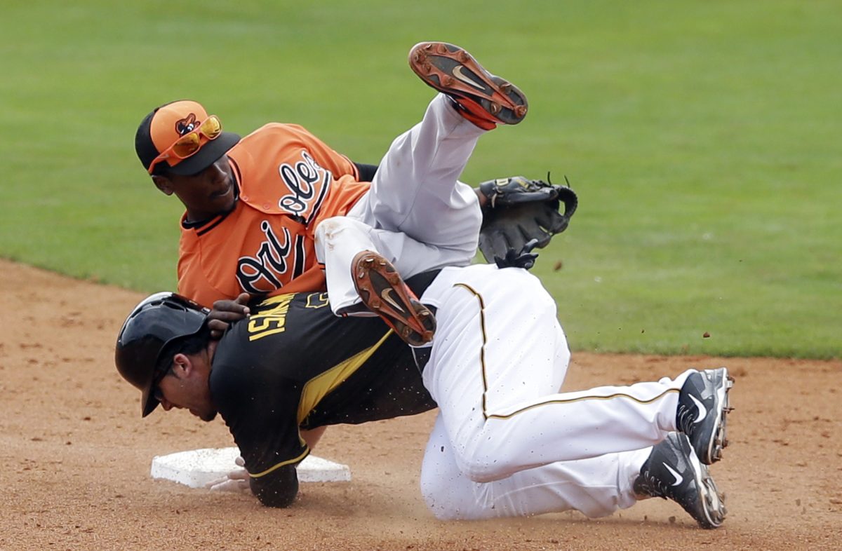 BRADENTON, Fla. – Russell Martin hit his fourth home run of a torrid spring training Monday, but Steve Pearce and Michael Almanzar each hit two-run homers to lead the Baltimore Orioles to a 7-6 victory over the Pittsburgh Pirates.
