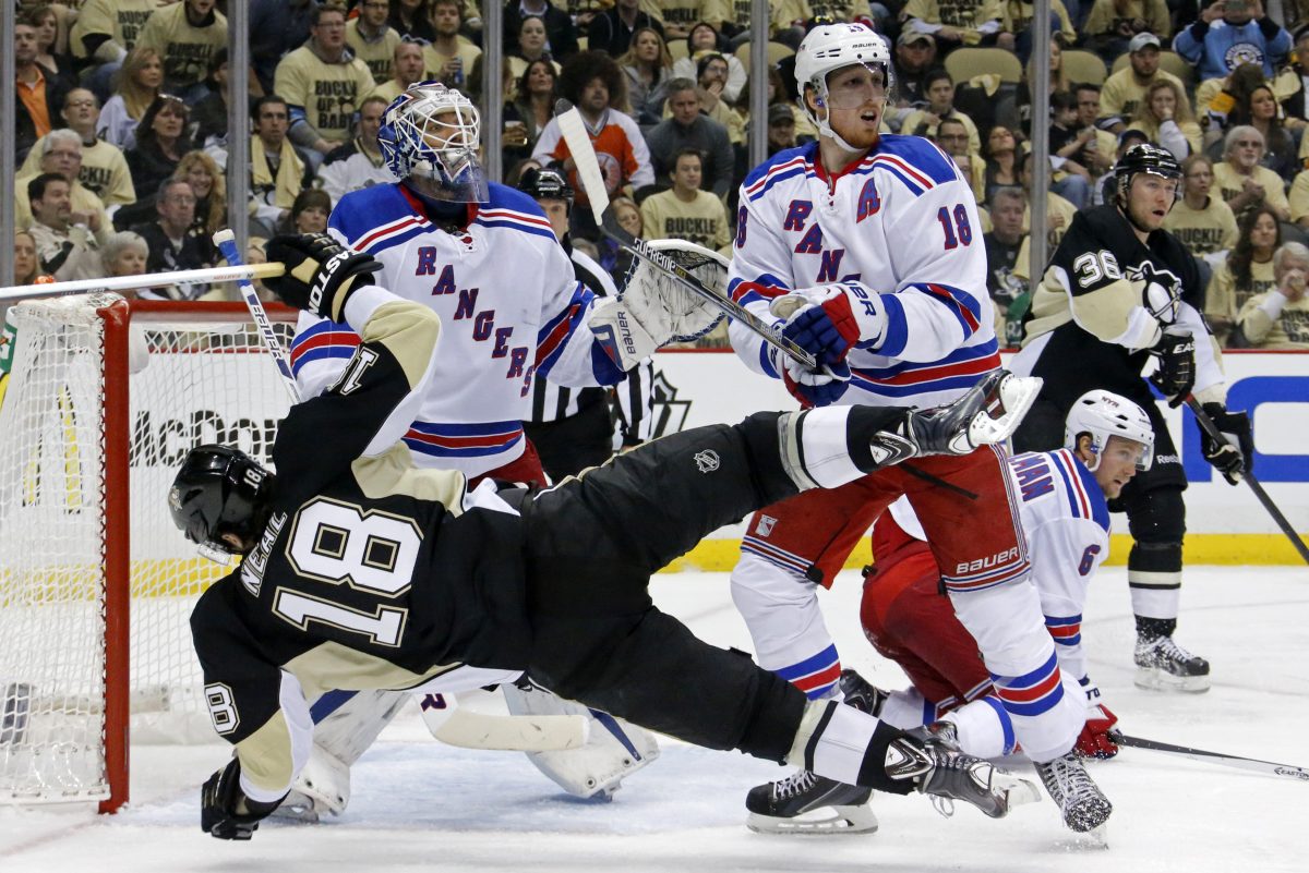 Pouliot and Brad Richards gave the Rangers an early 2-0 lead. Henrik Lundqvist stopped 34 shots and stuffed a late Pittsburgh breakaway in the final seconds of regulation. The line of Pouliot, Brassard and Mats Zuccarello combined for 14 points in New York’s four regular-season meetings with the Penguins.
