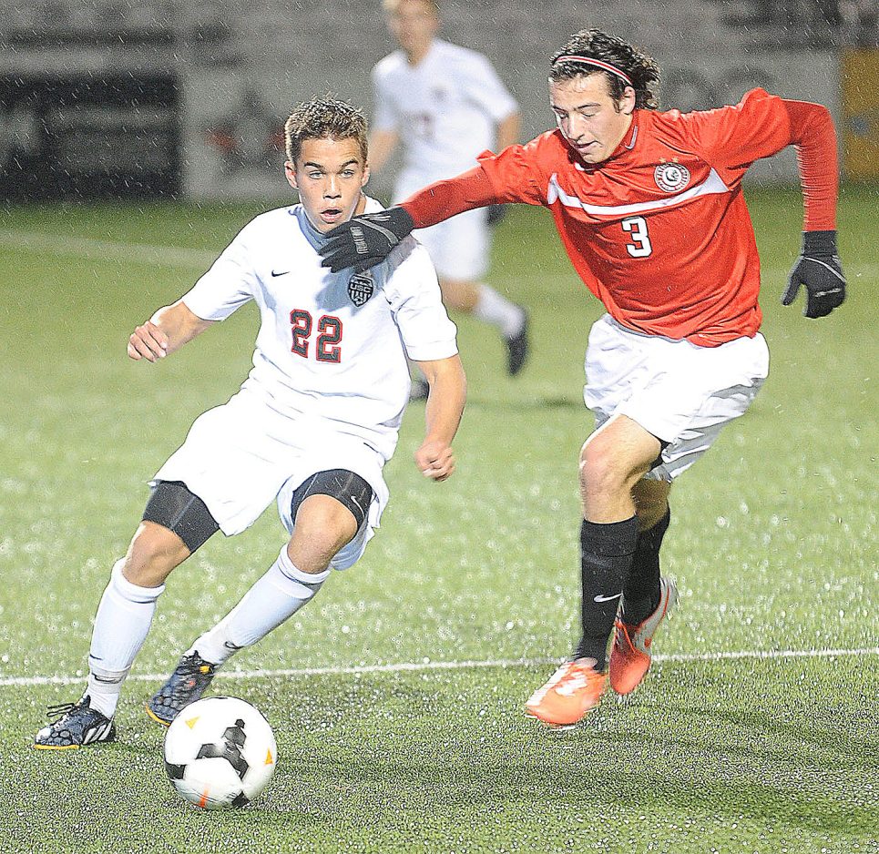 Upper St. Clair missed a prime scoring chance when a cross pass to the slot was missed. On the counter-attack, Nicco and Mario Mastrangelo capitalized. Mario quickly dribbled the ball up the middle of the field after a free kick and passed to his brother, who was sprinting toward the goal. Nicco’s low shot from 15 yards out beat Upper St. Clair keeper Kenny Rapko at the far post for the two-goal lead in the 25th minute.