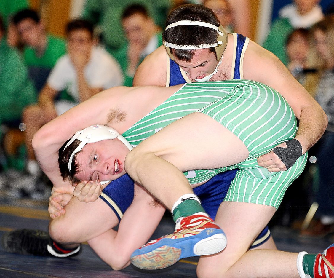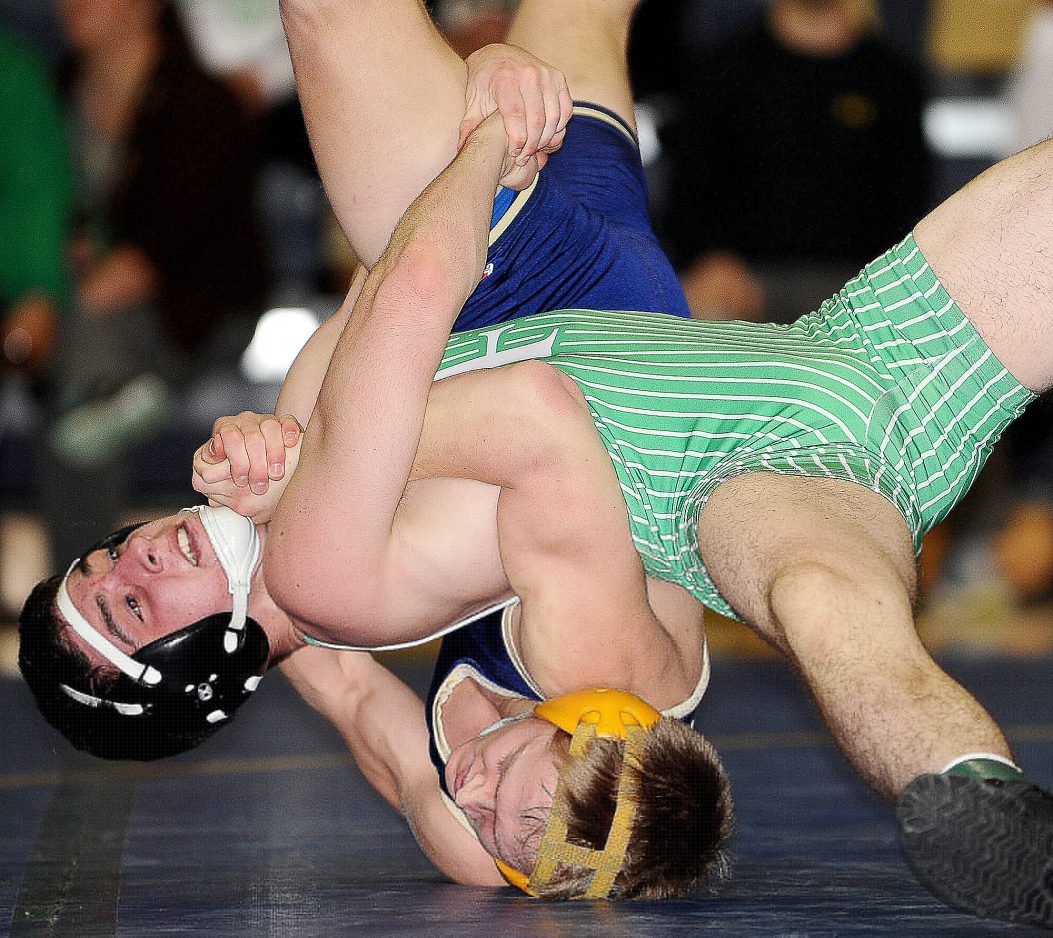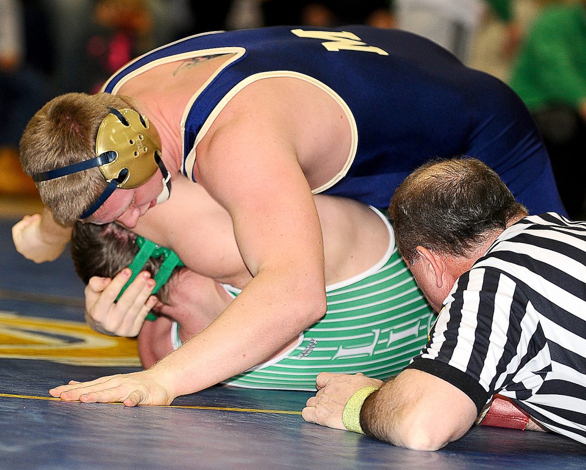 Gavin Teasdale (106) got the first of his two pins and Brendan Howard won by a 20-5 technical fall over Jasper Wolfe to give J-M a 9-3 lead. Howard’s win was the 144th of his career and broke the school record of 143, set by Dustin Conti two years ago.