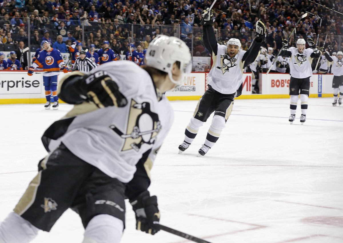 Notes: Both teams have significant injuries to key players. The Penguins were without starting goaltender Marc-Andre Fleury, diagnosed with a concussion Friday, while the Islanders will not have defenseman Travis Hamonic for the rest of the regular season with a lower body injury sustained in a win over Columbus on Thursday. … Marek Zidlicky dressed in place of Hamonic. The game was Zidlicky’s first since March 6. … Along with Hamonic, Mikhail Grabovski and Jaroslav Halak missed the game due to injuries. … The Penguins scratched Olli Maatta, Derrick Pouliot and Bryan Rust. . Steve Bernier, Eric Boulton and Ryan Pulock were scratched by the Islanders. … The Islanders announced a sellout crowd of 15,795. It was their eighth sellout of the season.