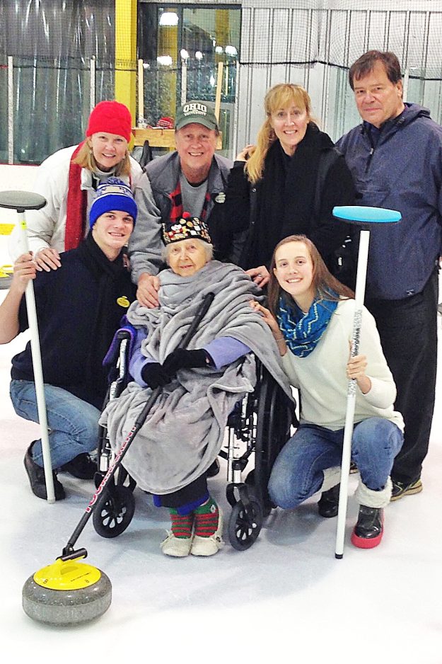 Former Canonsburg resident Anne Burchesky threw the foursome’s first stone. Joining the wheelchair-bound 96-year-old on the ice was her son Doug, daughter-in-law Jenna, nine-year-old great-granddaughter, Noa Burchesky, granddaughter Jenna Burchesky, and grandson Sean Burchesky, all from out-of-state.