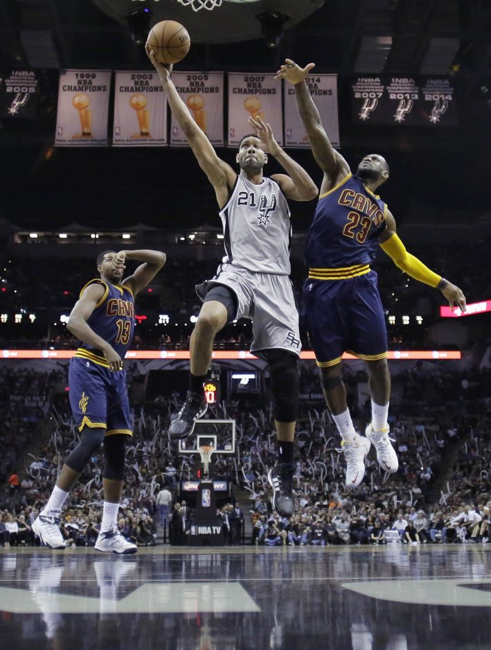 The Spurs won 36 more games in Duncan’s rookie year than they had the previous season and were NBA champions in his sophomore campaign. They also won titles in 2003, 2005, 2007 and 2014, the last one a dominant run to redemption over James and the Miami Heat after losing to them in seven games the previous season.