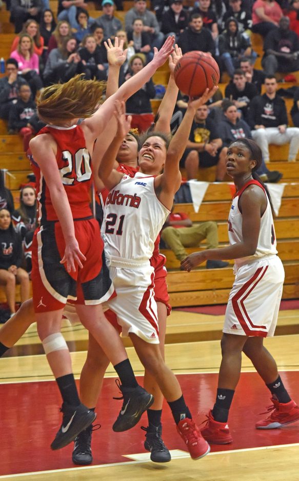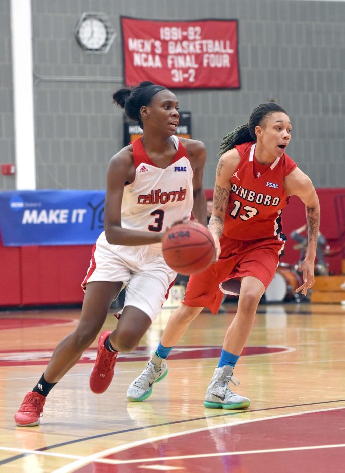 CALIFORNIA – With less than four minutes remaining in the third quarter Tuesday night, the California University women’s basketball team – the defending NCAA Division II national champion – was on the verge of being run out of its own gym in its first postseason game, the PSAC tournament quarterfinals.