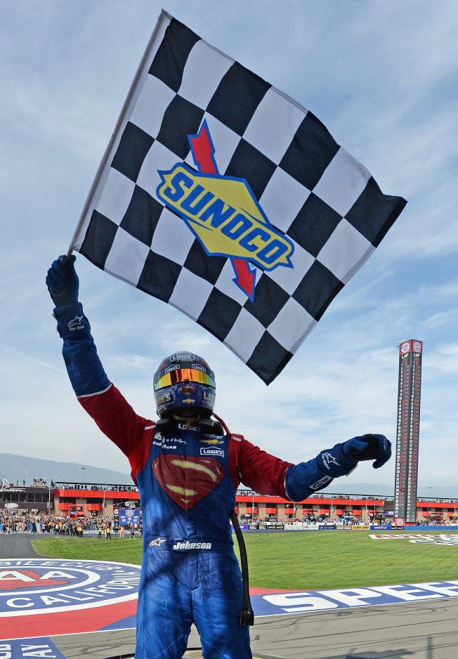 Johnson is from El Cajon, just outside San Diego. He won at Fontana in 2009 and 2010, but hadn’t finished higher than ninth in his last four races at his closest thing to a hometown track, one hour east of Los Angeles.