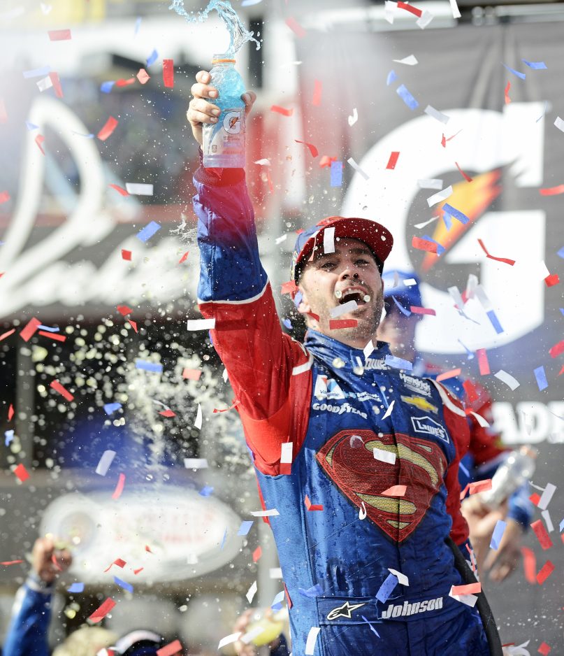 “I knew we had a great car, and the caution fell at a bad time,” Johnson said. “The run before, I just didn’t have the tires on the car to race with those guys. I got a great run off of Turn 2, and I thought, ‘Man, I’ve got a shot at this thing,’ which I didn’t expect to have. Harvick has been so fast.”