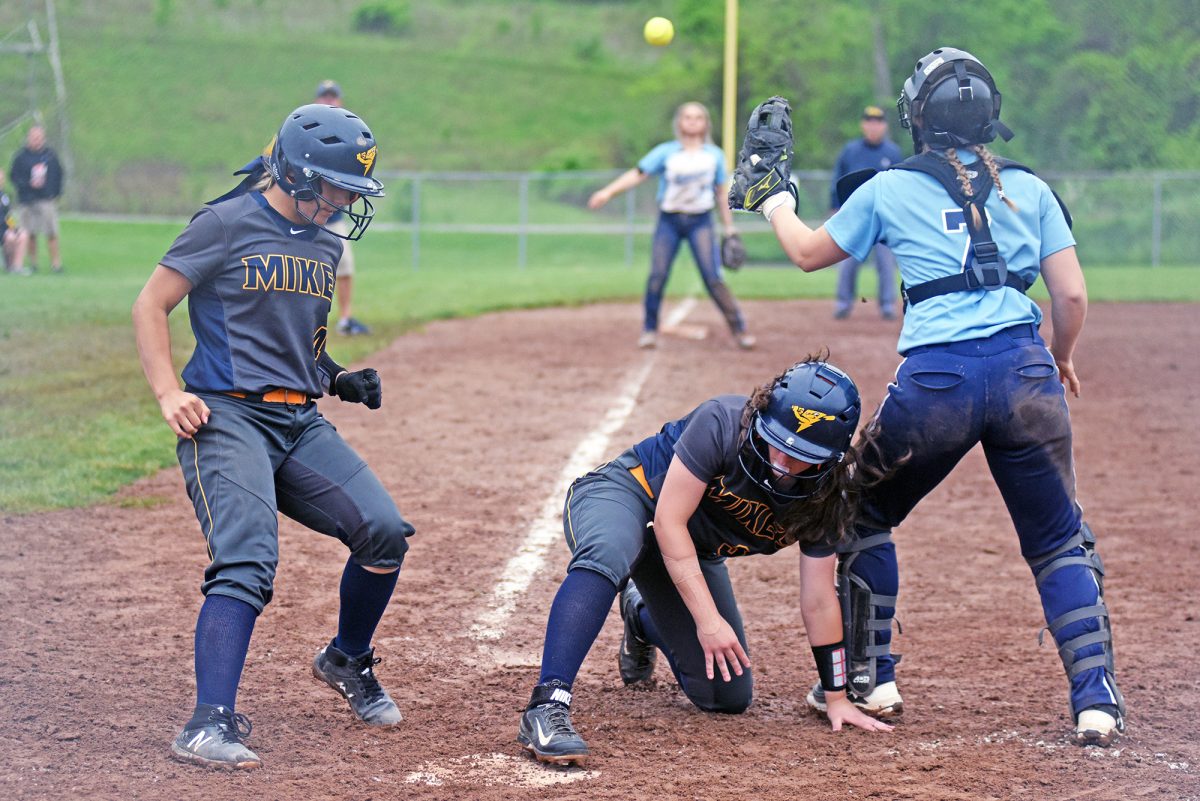 After Shelbee McCann’s one-out single put two runners on base for the bottom of Carmichaels’ order, the next two Mikes reached on errors. Ashlynn Gillogly and Megan Walker both walked to force in runs, and Sinn hit a three-run double to draw the Mikes to within one entering the seventh inning.