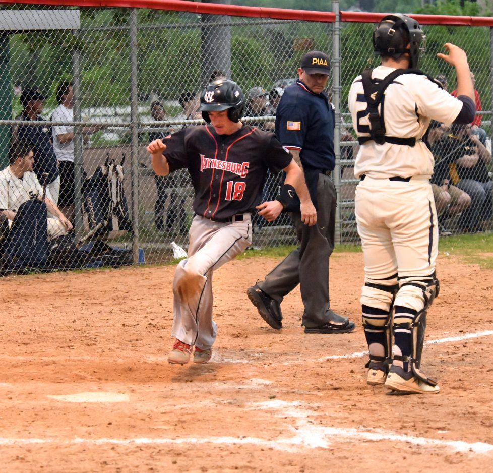 Waynesburg third baseman Kyle Blasco was the main contributor in trimming the deficit to 6-4 in the fifth. His two-run double into the right-centerfield gap scored Nick Zater and Brandon Turcheck. Blasco then slid into home plate to make it 6-5, scoring after a defensive lapse by Shady Side (7-9) on a steal play with the Raiders’ Luke Robinson at first base.