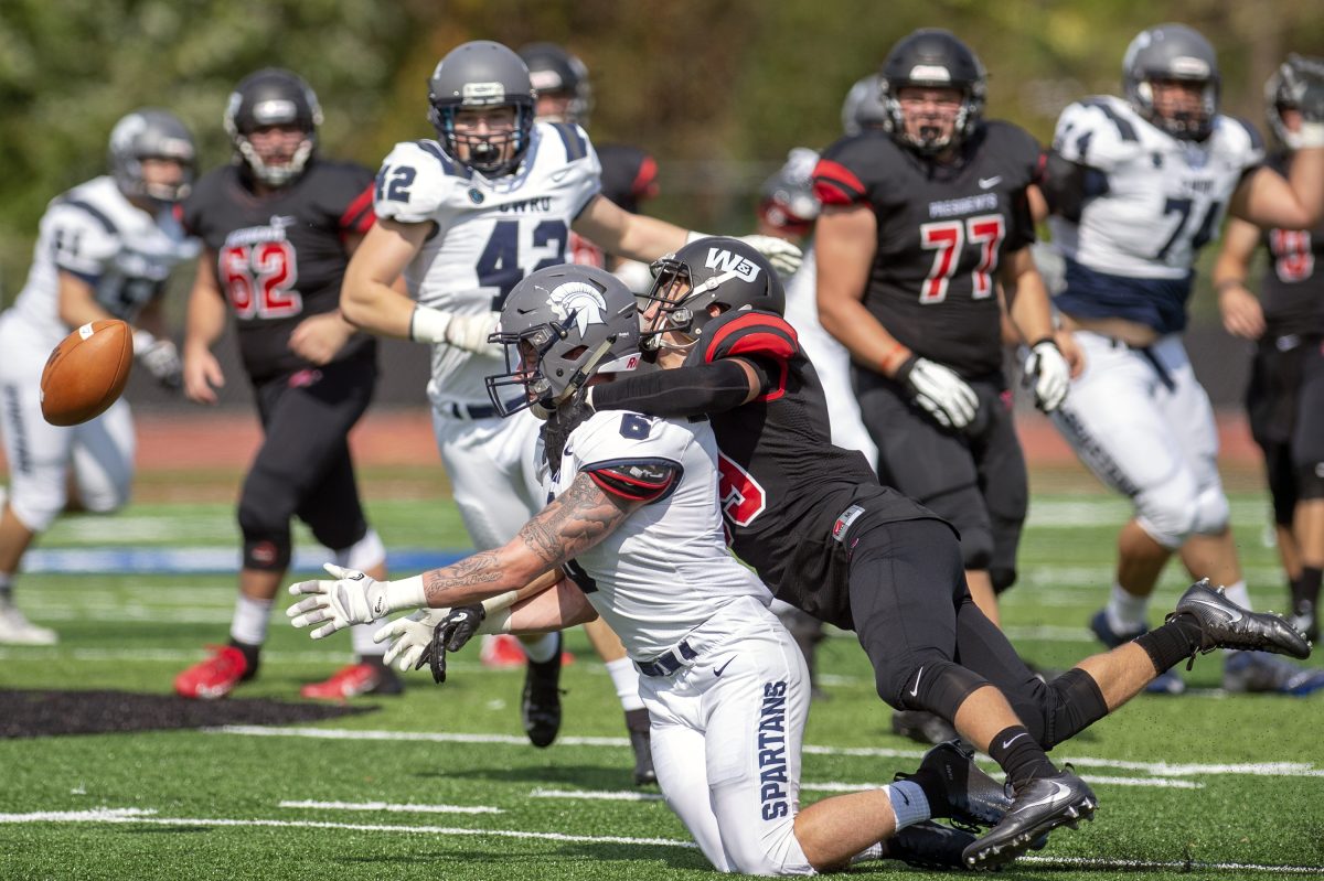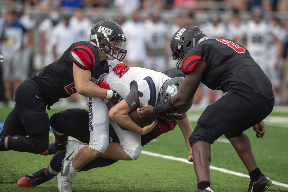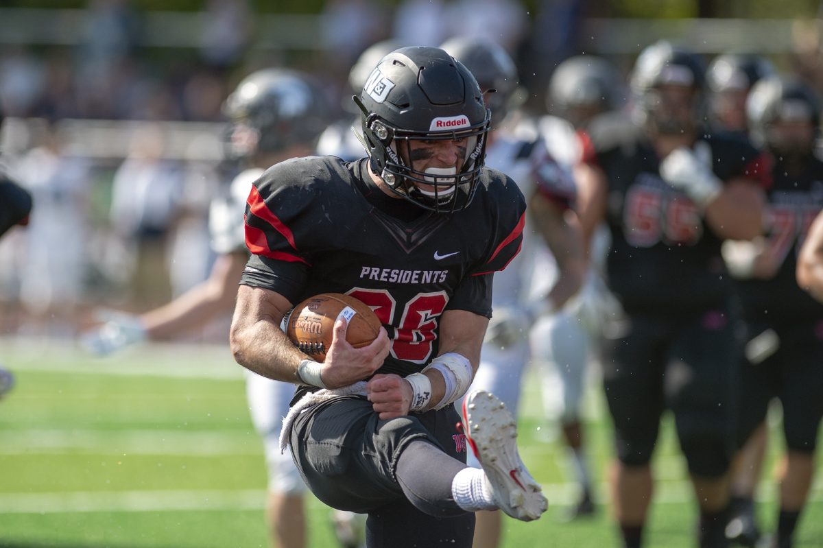 Quattrone finished with 11 tackles. Cole Weston and Mike Williams each had a fumble recovery and the Presidents sacked Saxton four times.