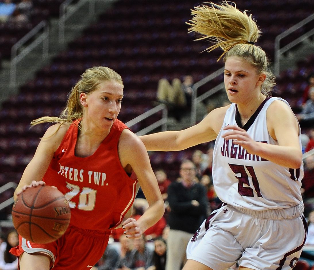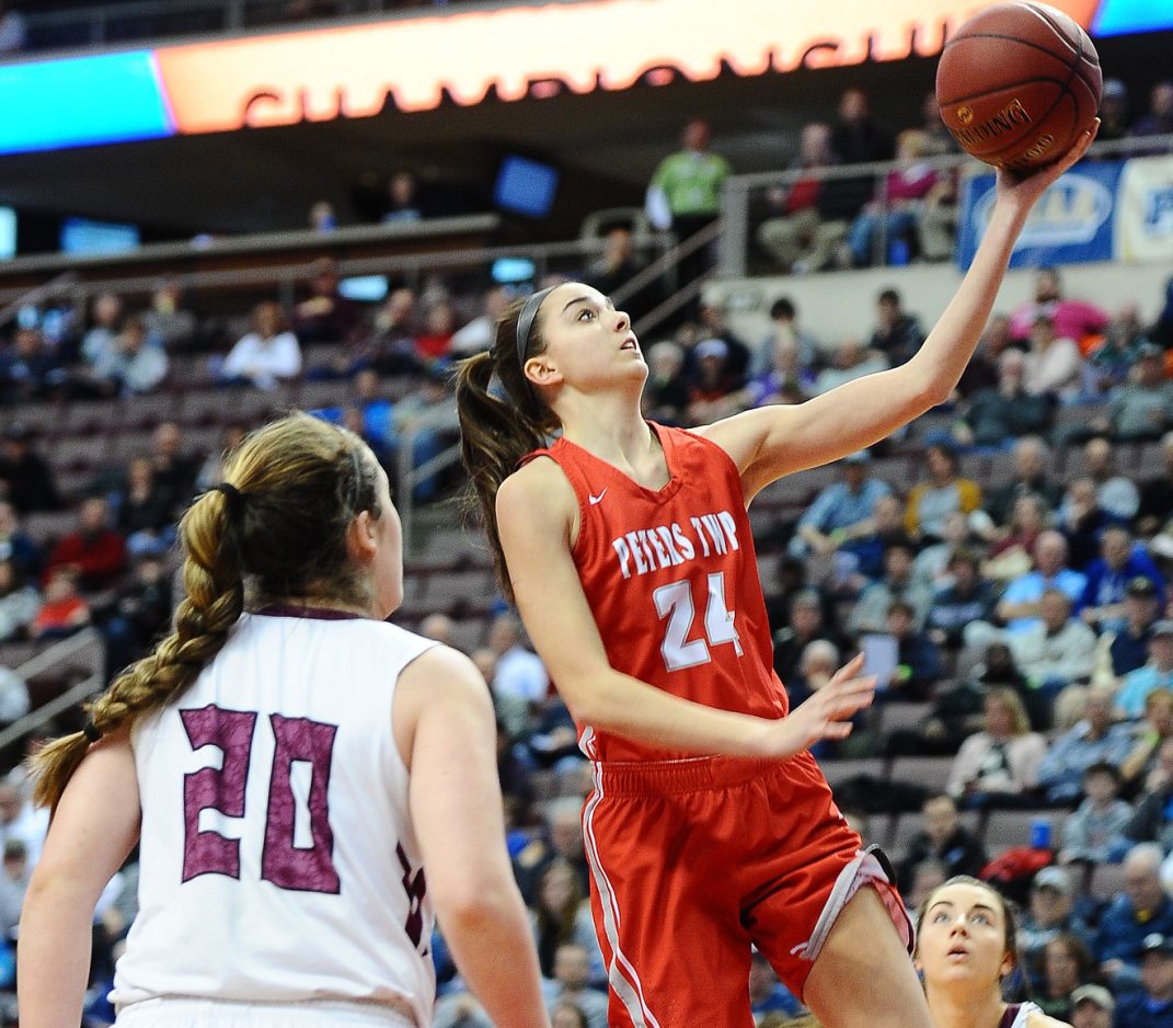 Marisa and Isabella Mills each scored seven points in the opening quarter, including hooking up on a three-pointer when Marisa rolled off a screen, caught a Mills pass and buried a straightaway three to give Peters Township an 18-9 lead with 1:37 left in the first quarter.