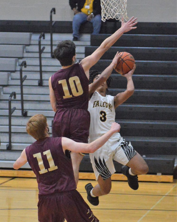 Chartiers-Houston’s Emanuel Ntumngia was fouled when he tried to heave a 3-pointer with 0.2 seconds remaining that was well off the mark. He made the second of the three foul shots, missing the third on purpose but the ball deflected of a Falcon player and time ran out.