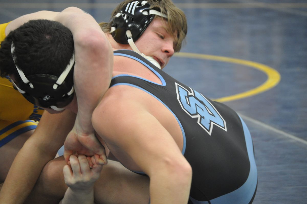 Returning state champion Gerrit Nijenhuis recorded his second pin of the day to become the school’s all-time leaders in victories with 164. Colin Johnston previously held the record.