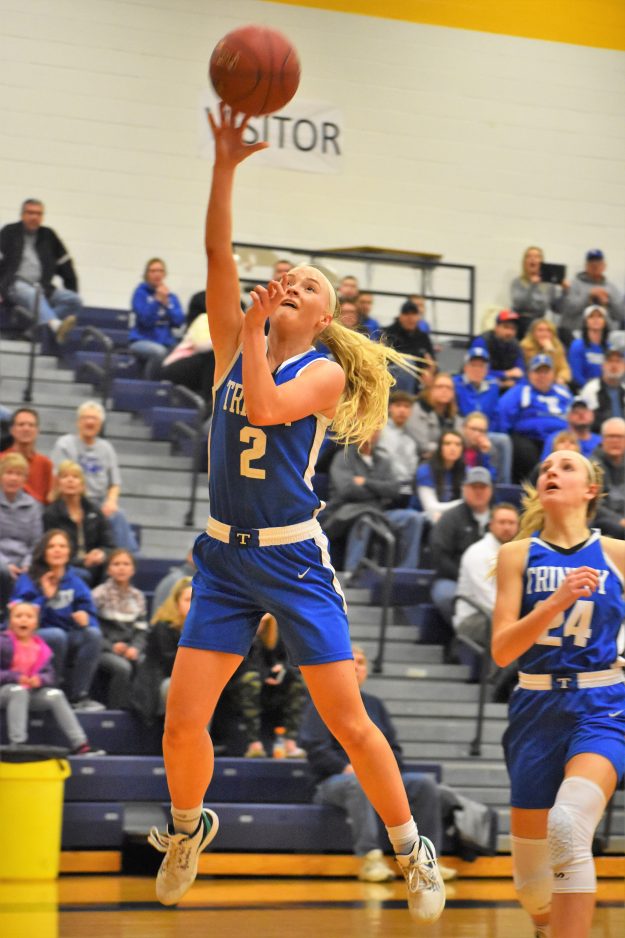 Getting away from a half-court, slow-paced game, Trinity began to run and never looked back. Riley DeRubbo made a layup to trim the Hillers’ deficit to one point for the third time in the second quarter. A Courtney Dahlquist floater and a pair of Kaylin Venick layups, including one as the first-half buzzer sounded, ended an eight-point run and gave Trinity a 19-14 halftime lead.