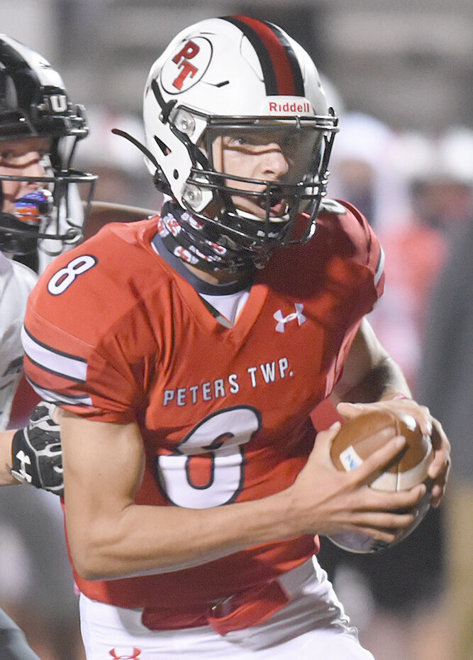 His counterpart on Peters Township, Logan Pfeuffer, has completed 72 of 123 passes for 1,110 yards and nine touchdowns. He averages five yards every time he rushes the football (37 attempts for 185 yards). Pfeuffer runs hot and cold. He threw for three touchdowns in the second half against Gateway after being shut out 19-0 in the first half.
