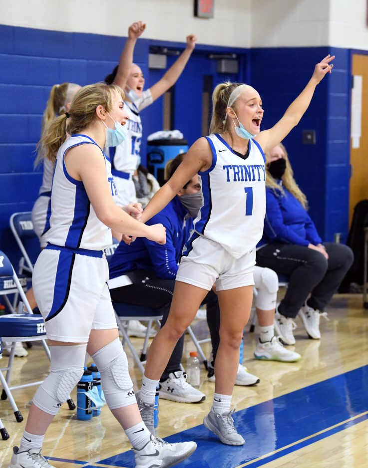 To no surprise of any Trinity followers, Courtney Dahlquist led the way in scoring with 17 points. Four other Hillers scored in double figures. Abby Wayman and Kaylin Venick each had 15, with all of Wayman’s points coming from beyond the three-point arc. Kaylin’s sister, Emily, added 11 points, and junior Alyssa Clutter had 14, along with seven steals.