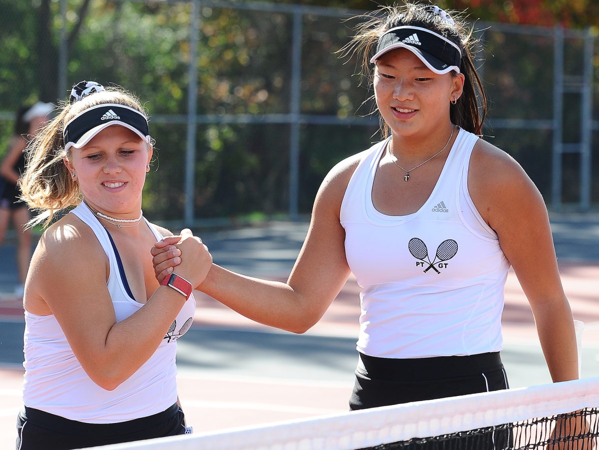After dropping the first set in the Class AAA finals played Nov. 7 at the Hershey Racquet Club, Wang and Bruce roared back and defeated Hana Nouaime and Alice Liang from Methacton, 5-7, 6-4, 6-3, to repeat as state champions. In 2019, the pair defeated Radnor’s duo of Kannon Ciarrocchi and Lucy Hedrick, 6-3, 3-6, 6-2, for their first title.