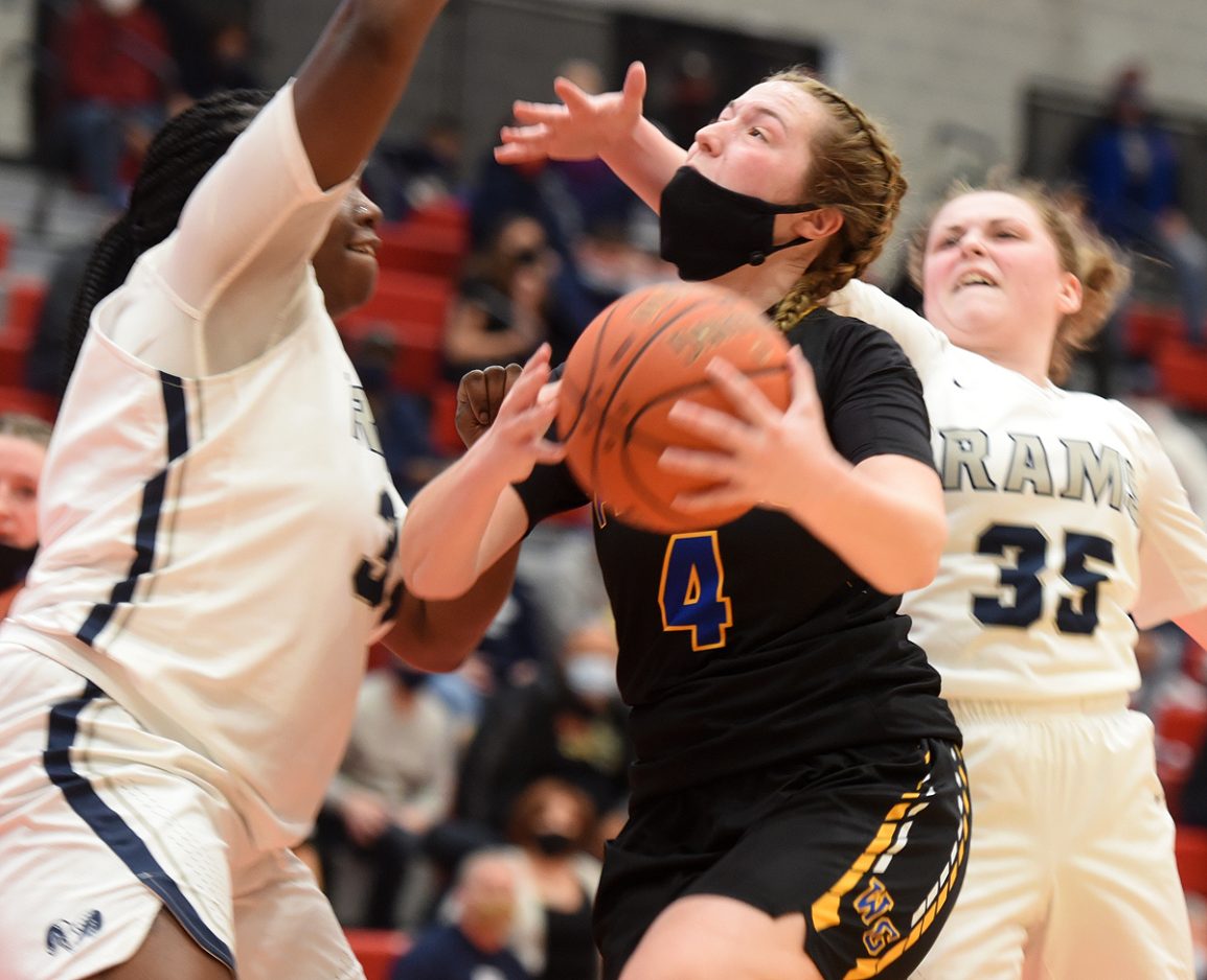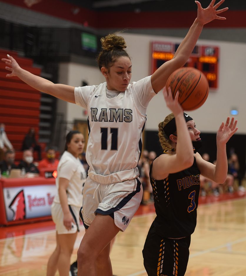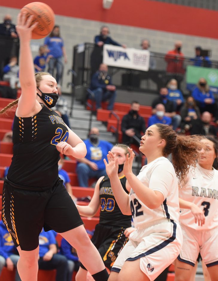 Hauser scored 23 points, many of them on end-to-end driving layups. Her biggest contribution, Rochester coach C.J. Iannini said, came on defense. Hauser played sticky man-to-man defense against Wise as the Rams’ ball pressure caused all kinds of problems for the Pioneers.