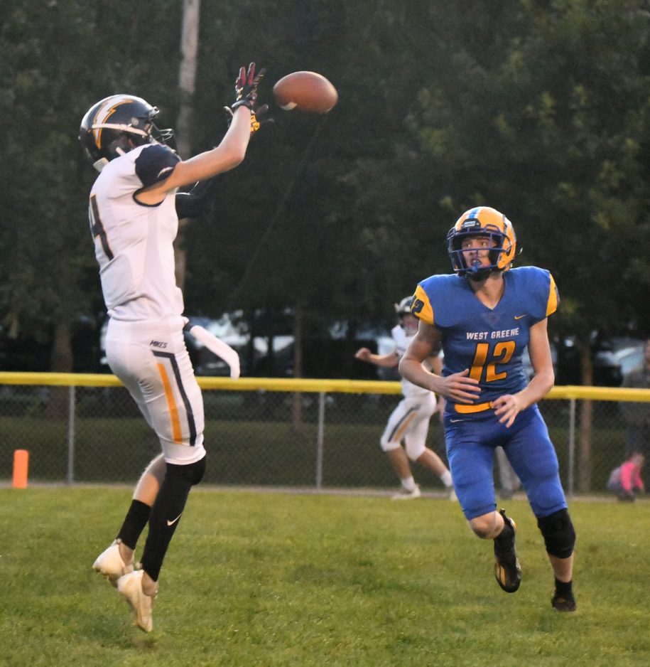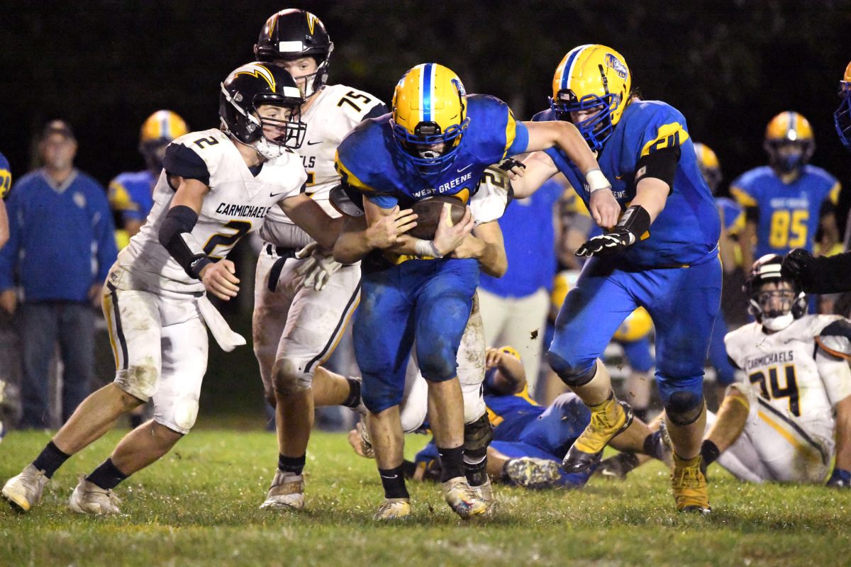 ROGERSVILLE – When Carmichaels traveled to West Greene Friday night to take on the Pioneers in a matchup of undefeated Tri-County South Conference teams, something had to give. The Pioneers, behind a raucous crowd at Kennedy Field were able to prevail, 41-20.