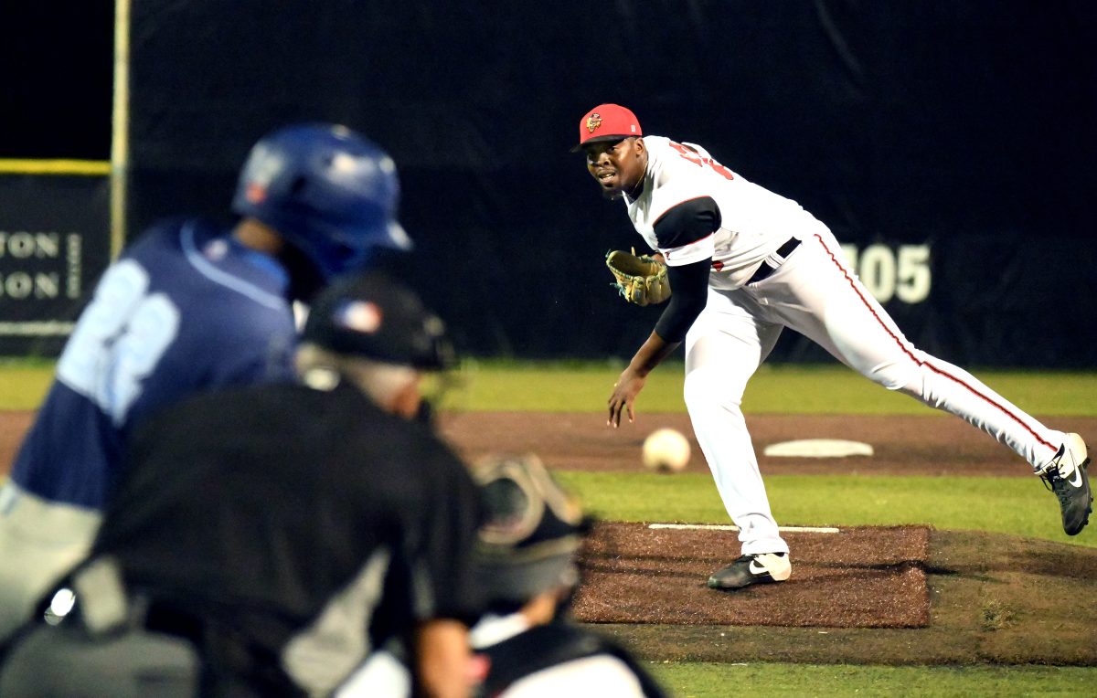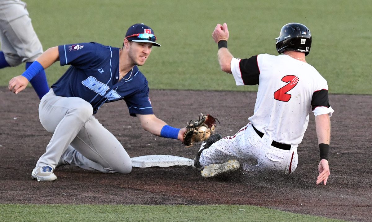 The Boulders’ first run came when Jack Sundberg scored from second base on a bunt up the first-base line by Milton Smith Jr. The ball hugged the baseline and Pimentel let it roll, hoping it would go foul. When it didn’t, and with Sundberg rounding third base, Pimentel picked up the ball and fired it to home plate. Umpire Ron Whiting Sr. ruled that catcher Cody Young’s tag missed Sundberg and the Boulders led 1-0.