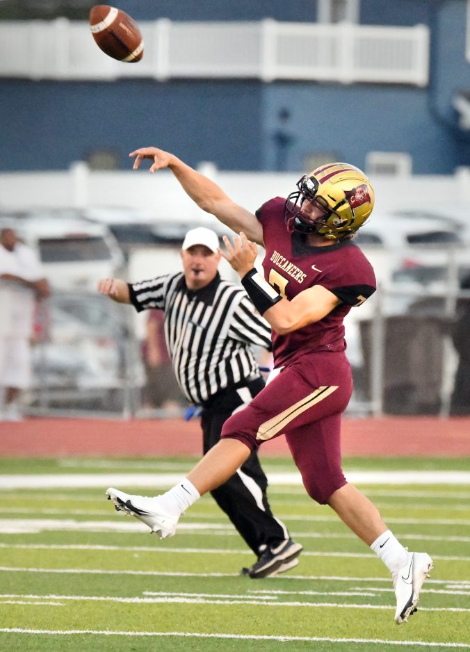 The Bucs (3-0) took advantage of a blitzing Bulldogs (0-3) defense early in the first quarter when quarterback Terry Fetsko found Jake Mele for a 37-yard scoring strike. Mele beat his single defender that was exposed by a blitz on 4th-and-17.