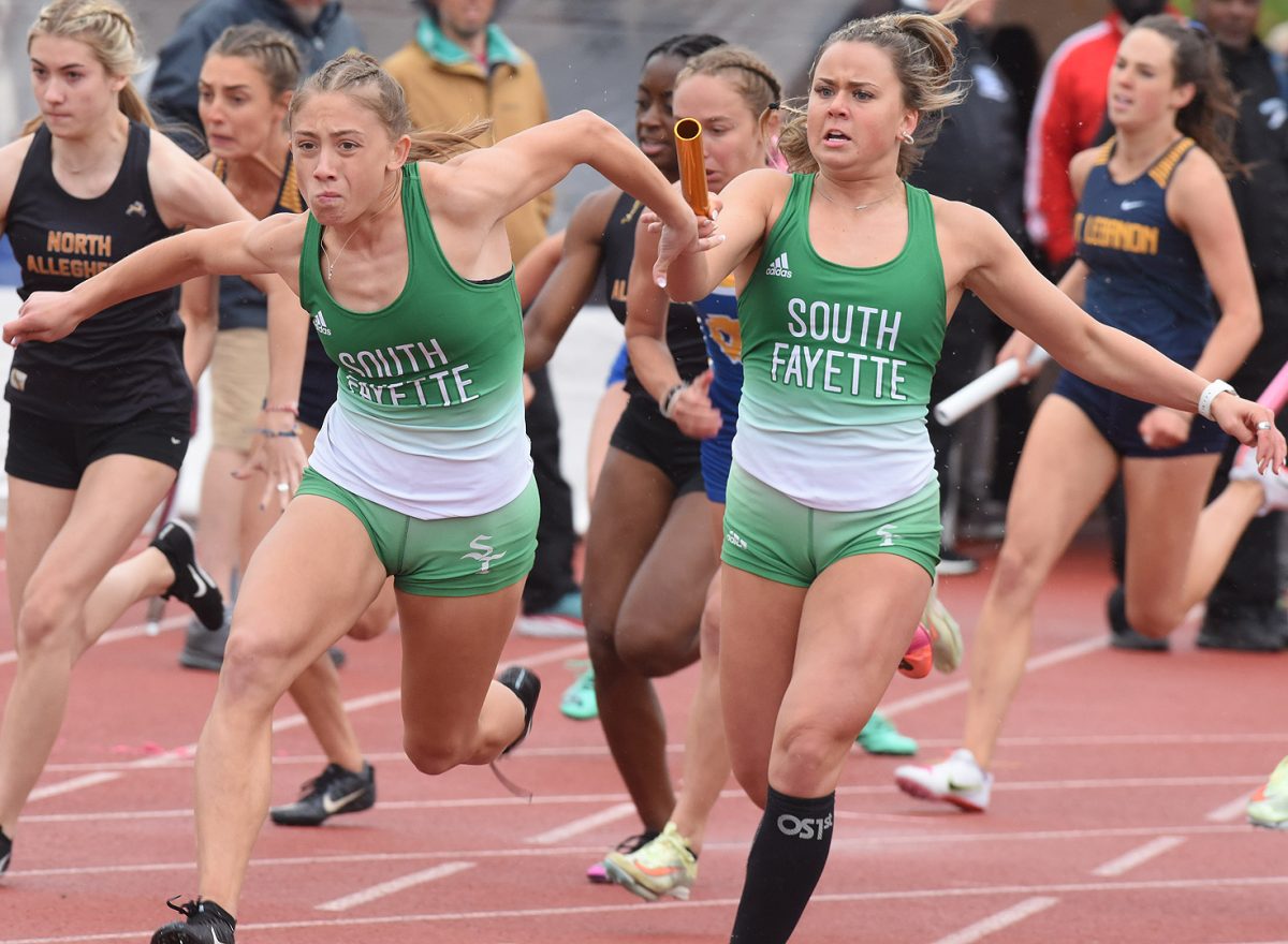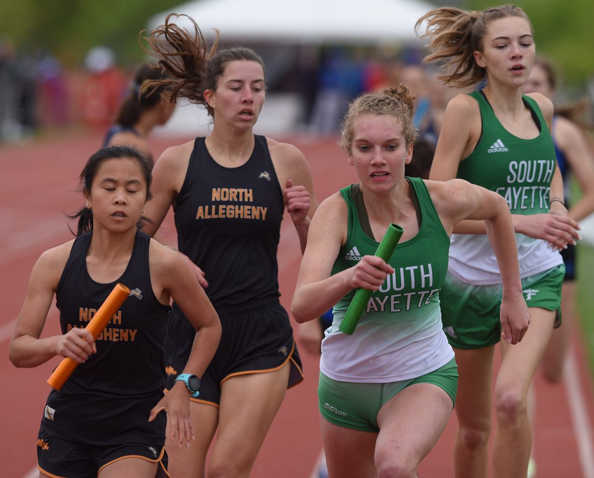 The South Fayette 3,200-meter relay team of Emily Sinton, Zoe Poe, Lily Colombo and Lauren Iagnemma took the silver medal with a time of 9:35.71, about one second off the pace of winner North Allegheny.