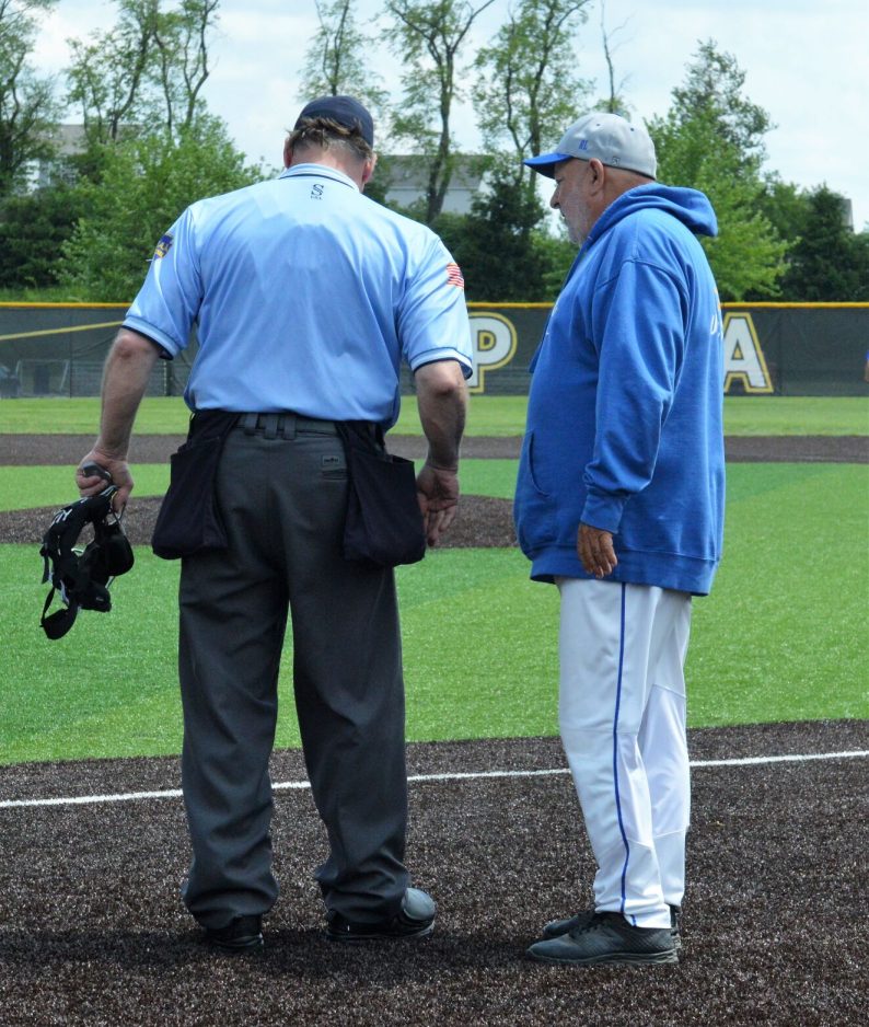 The Pioneers were then sent scrambling for proper footware as Burkett Field has a newly installed turf infield.