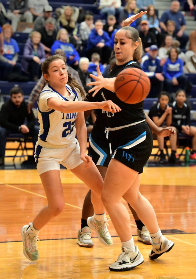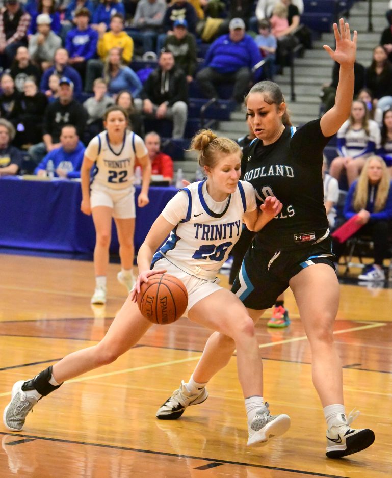 In the fourth quarter, Trinity didn’t score for well over three minutes, and Woodland Hills built a 37-28 lead. Baskets by Williamson and Macie Justice cut the deficit to five, and a three-point play by Williamson made it 37-35 with 3:55 left.