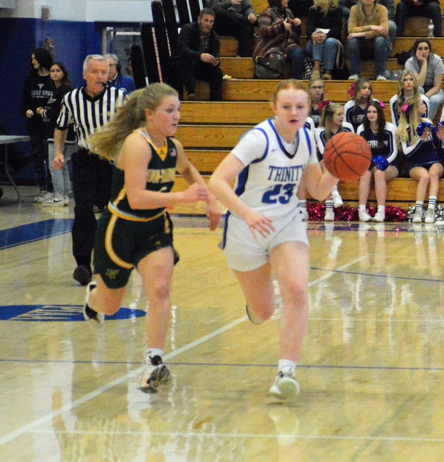 The Hillers were able to run one minute off the fourth-quarter clock before Agatha Niccolai made two free throws to give Trinity a 58-51 lead with 1:15 to play. Nicolai would add a layup with 39 seconds left that again made it a seven-point game.
