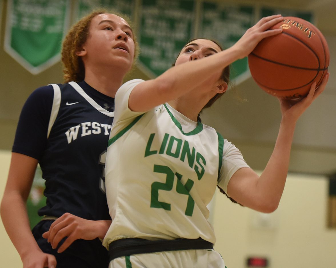West York (13-14), the eighth place team out of District 3, had one player taller than 5-8 while SF had eight, and the Lions took advantage as they had seven players grab at least five rebounds: Webber, Hall, Leroux, Lainey Yater (five plus four assists), Sydney Burns (five offensive), Ryan Oldaker (five) and JuJu Leroux (five).