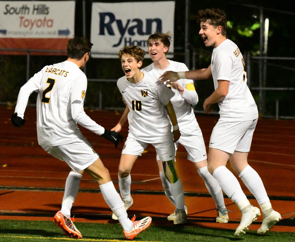 MCMURRAY – Ryan Moessner is small in stature, but the Bentworth sophomore proved he can play with the big boys in scoring both of the Bearcats’ goals, including the game-winner, in a 2-1 overtime victory over Burrell in the semifinals of the WPIAL Class A boys soccer playoffs Monday night at Confluence Financial Partners Stadium on the campus of Peters Township Middle School.
