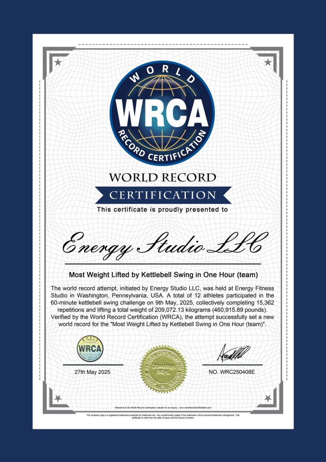 “Everyone at the gym was really starting to evolve with their kettlebell training, getting pretty strong. We started doing a lot of in-house competitions and challenges. I wondered what we could go for as a team,” said Sweet, which led to his interest in the world record attempt.