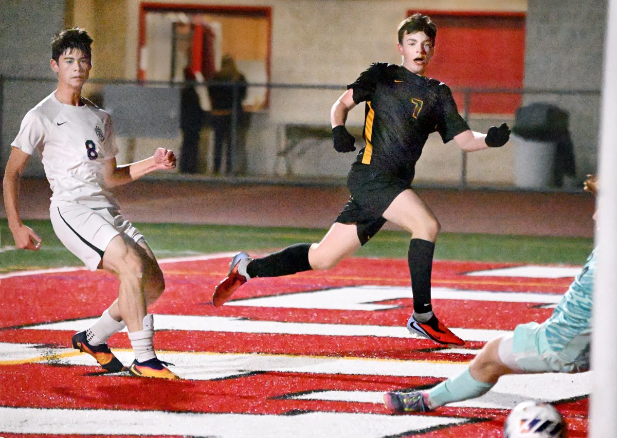 Ryan Moessner’s opening goal came in the 13th minute. He used his speed to race past the Winchester Thurston back line to get on the end of a through ball by younger brother Adam and placed a shot into the net past Bears keeper Aiden Piemme.