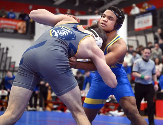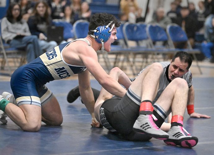 CANONSBURG – Aidan Finnegan finished off a 6-1 decision against Gus Stedeford to increase Canon-McMillan’s early lead to 19-6.