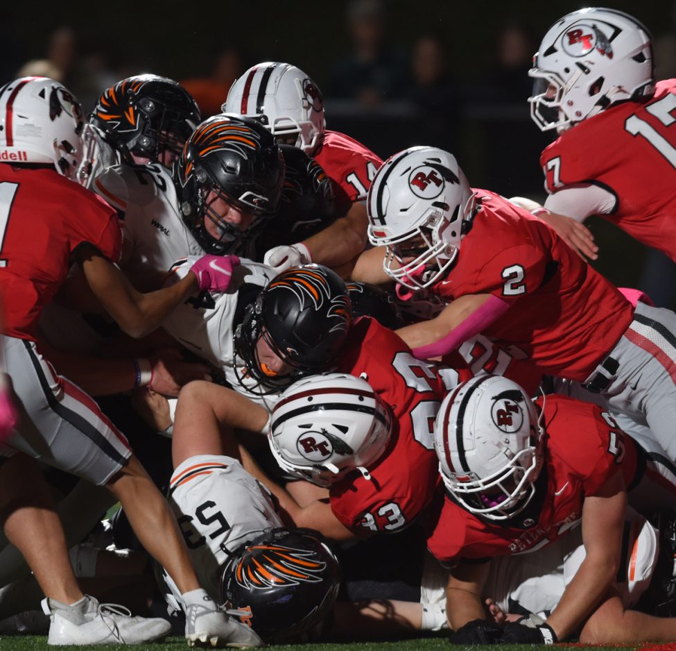 Courie finished with 127 yards rushing on 32 tough carries. Nick McCullough had three touchdowns and a big blocked field goal and Reston Lehman sealed the win with an interception of Tanner Pfeuffer with 13 seconds left in the game.