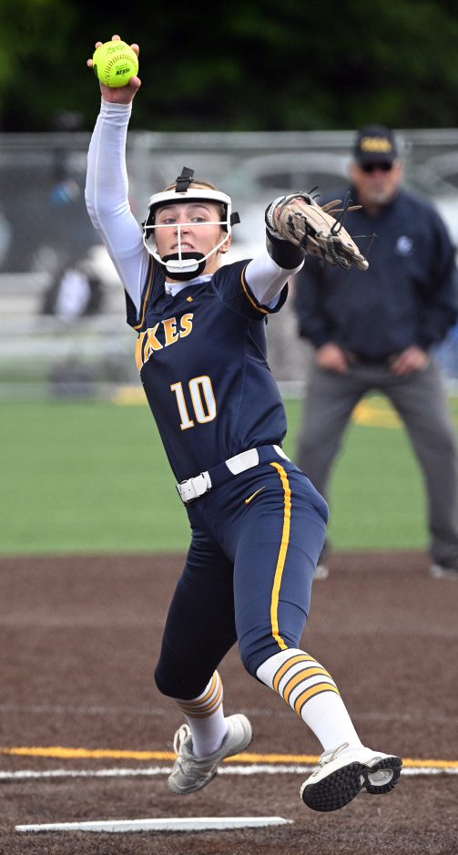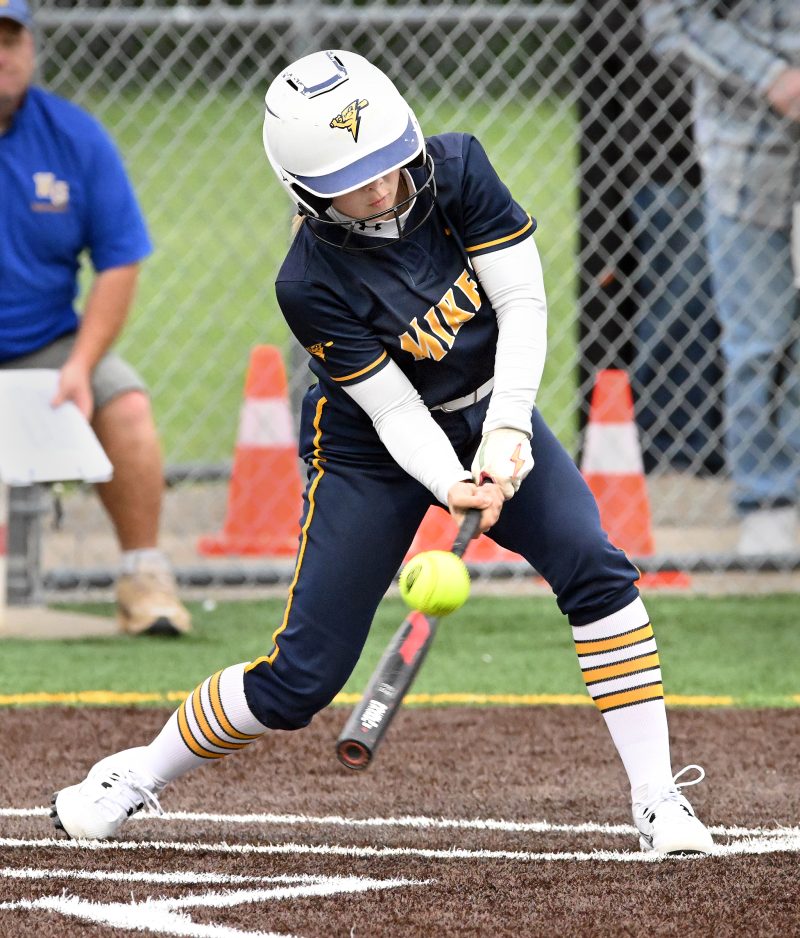 The Mikes’ Avery Voithofer laced a double to right-center leading off the third, went to second on Payton Plavi’s ground out and scored on Staggers’ sacrifice fly for a 6-0 lead.