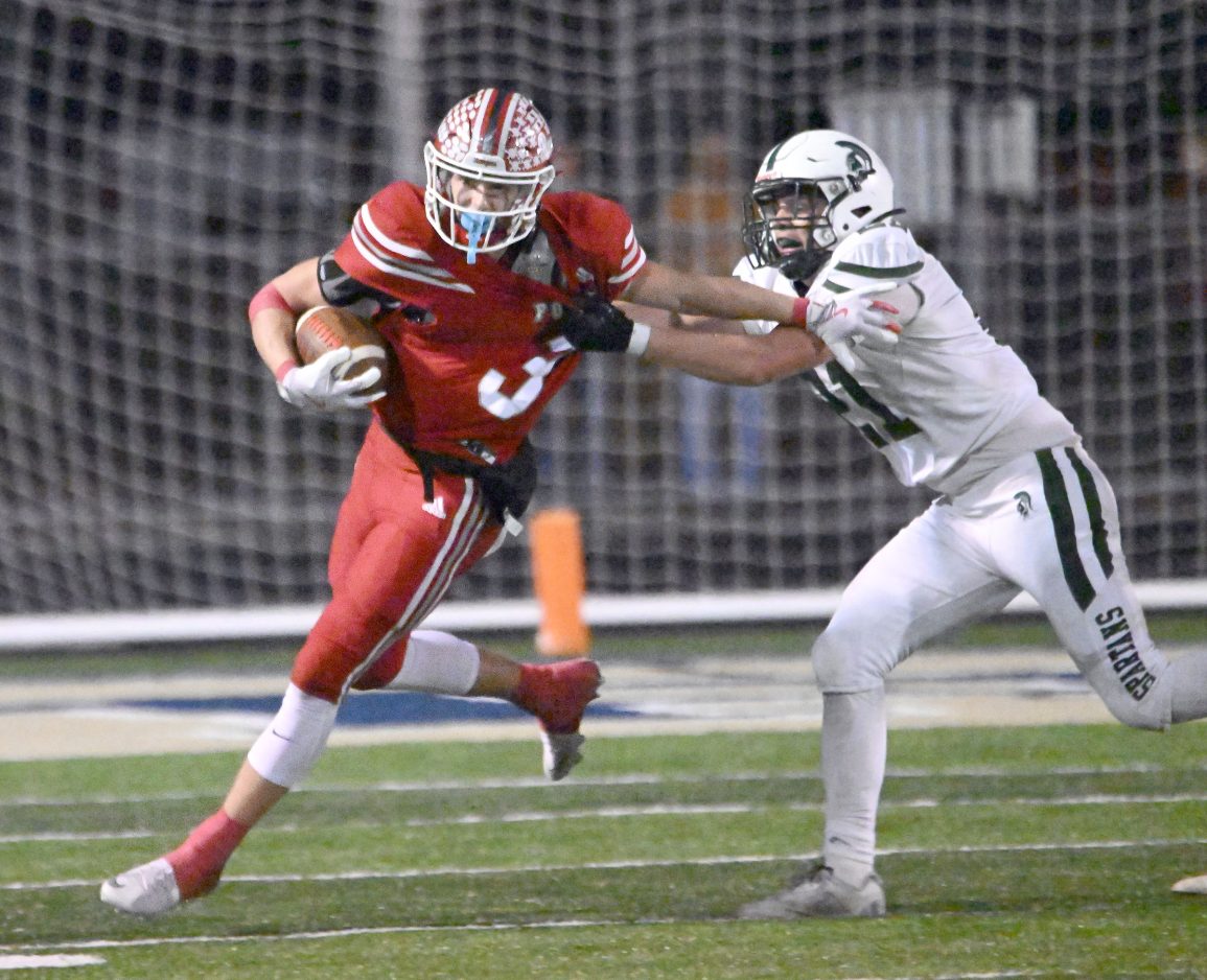 Less than a minute before Sieg’s touchdown, Laurel took a brief lead on a 30-yard touchdown pass from Luca Santini to Kolton Carlson. It was the only pass thrown in the first half. The extra point was partially blocked keeping the score at 13-7.